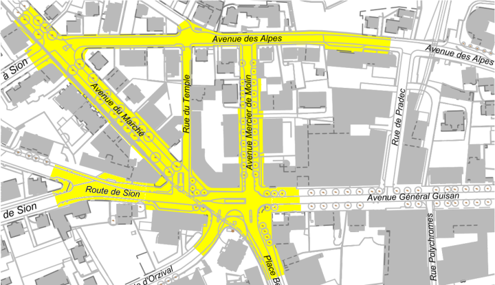 Géolocalisation de tous les points d'intérêt de la Ville de Sierre.