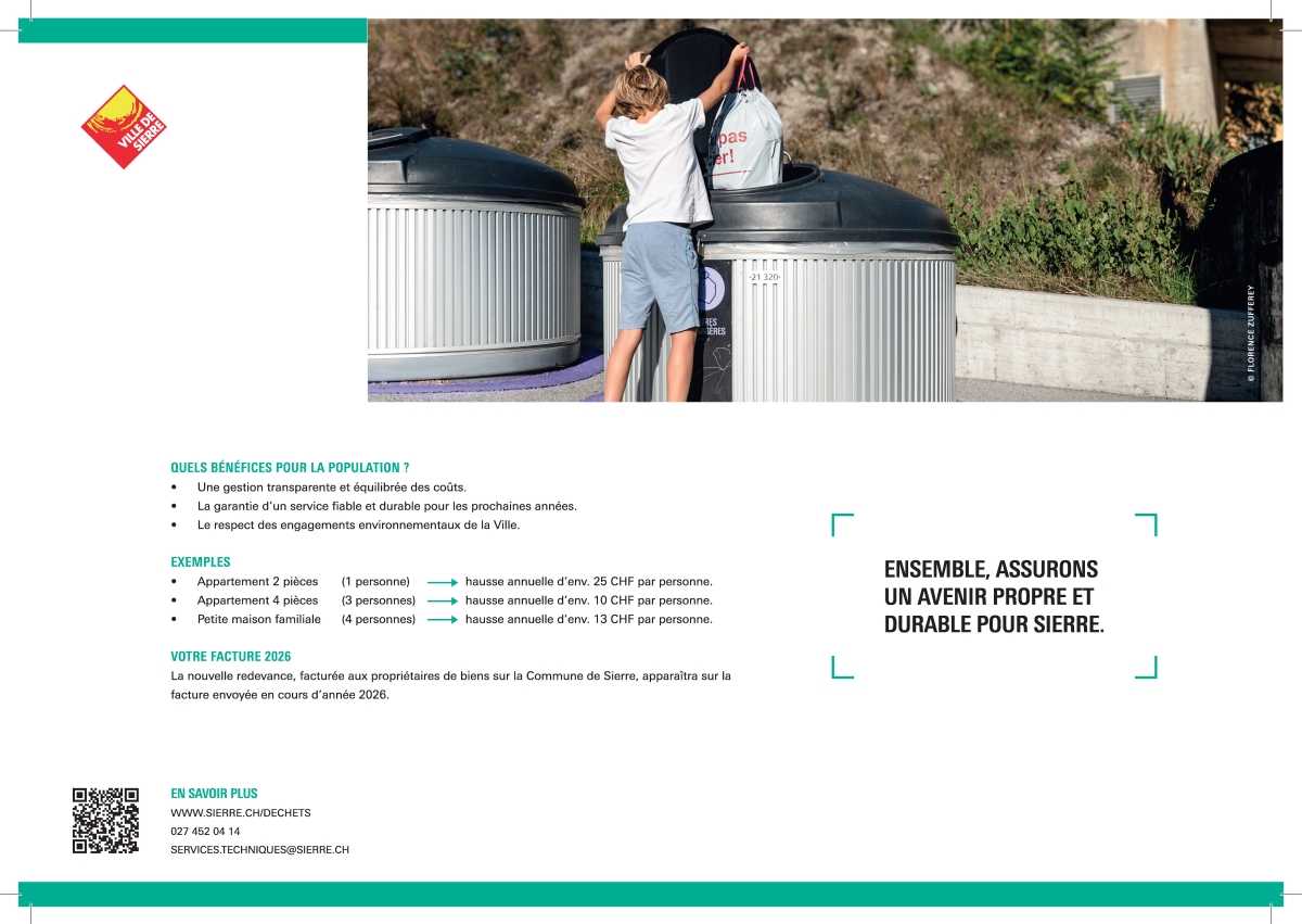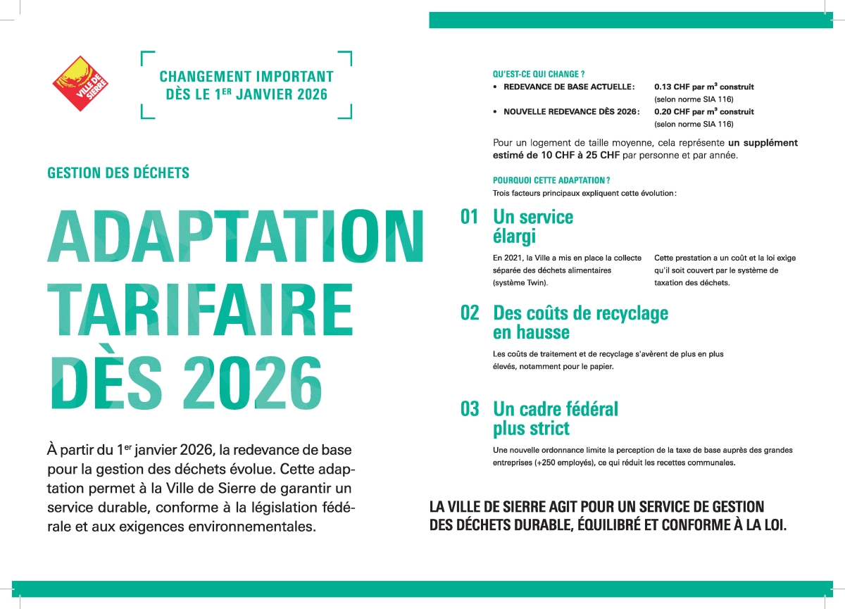 Dans ce contexte, une adaptation de la redevance de base s’avère nécessaire. Cette mesure vise à garantir un financement durable de la gestion des déchets sur le territoire communal, tout en maintenant un service fiable et de qualité au bénéfice de l’ensemble de la population.